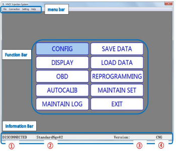 ¢Ù: Display the connection status between the calibration software and the gas ECU, with "ECU disconnected" or "ECU connected successfully"
