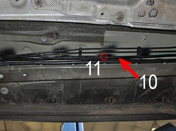 Copper pipe encased in black spaghetti insulation (10) (including utility cables measuring the level of gas), which leads from the multivalves LPG tanks to the front motor part is installed in accordance with applicable regulations and is laced with clips (11).